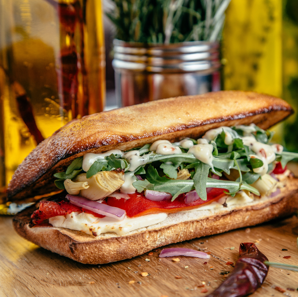Irish Pulled Ham with Swiss Cheese, Light Slaw, BBQ Sauce & Red Jalapenos served on Toasted O’Briens Ciabbata.