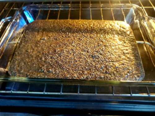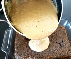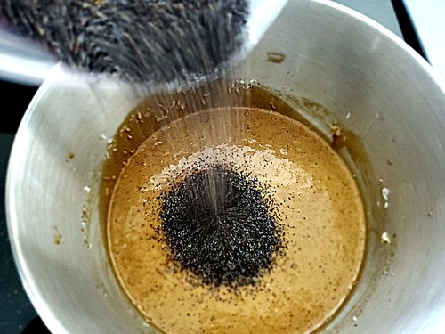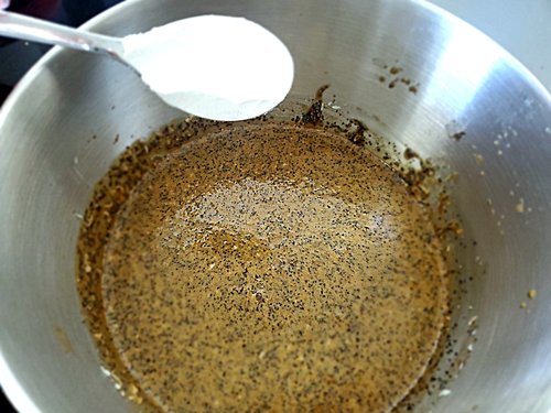 Let it cool off then add the vanilla cream on top of the baked poppy seed base.