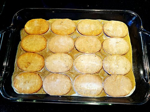 Place each biscuit over the casserole and put it in the fridge for few hours before serving.