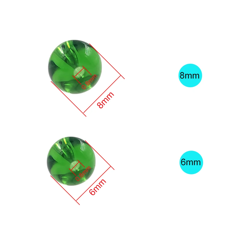 The round glass beads enable you to easily make your own custom rigs. The round glass beads are designed for saltwater fishing. 8mm,6mm, 50-pack.