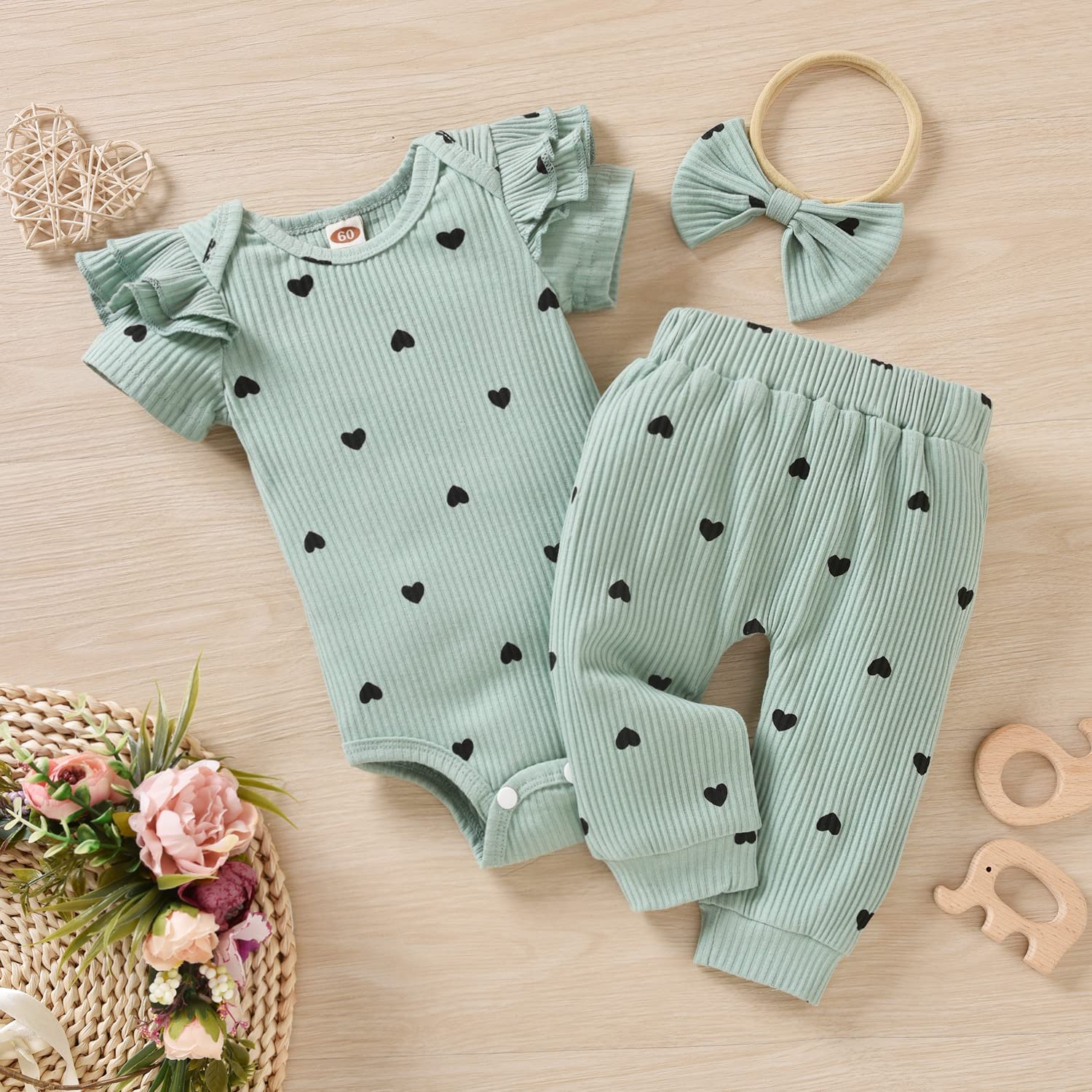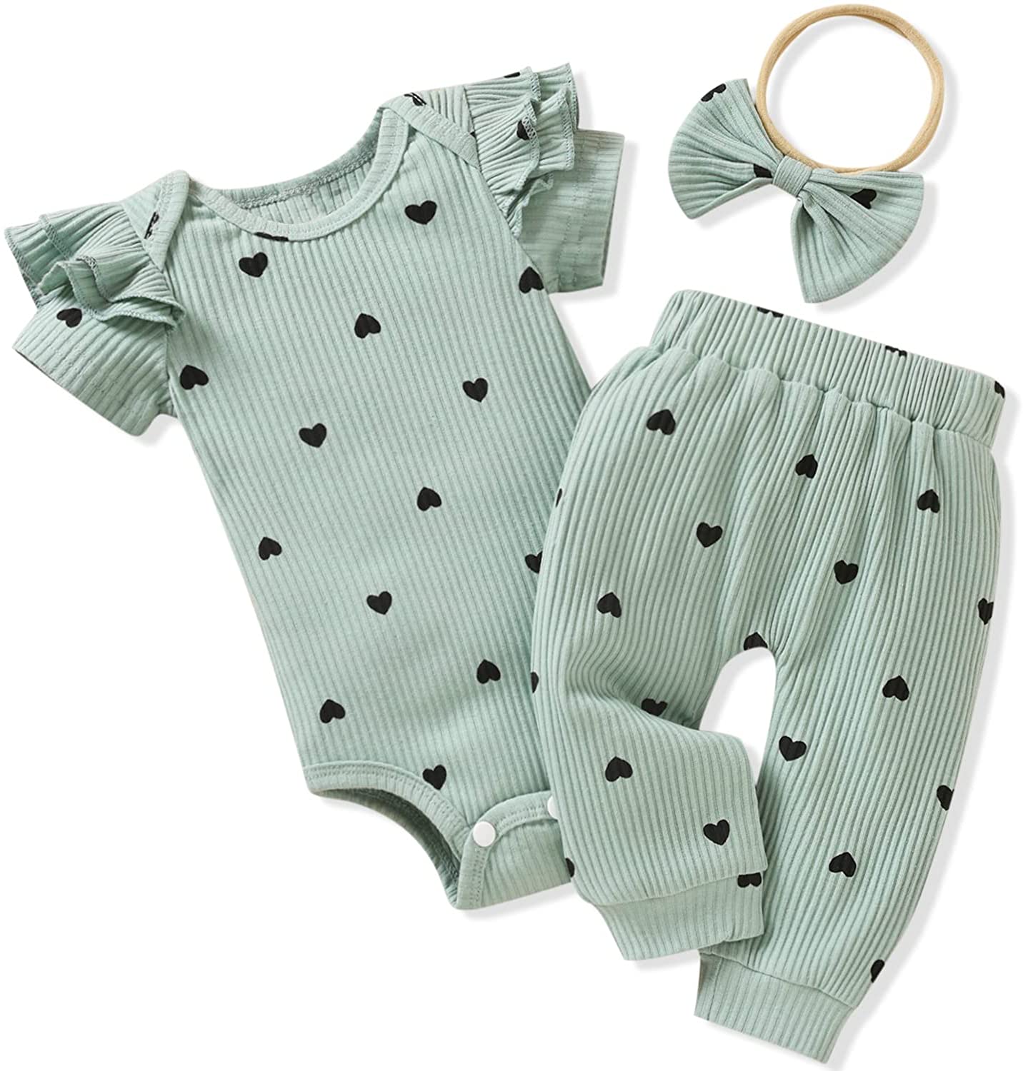 Package included: 1 x baby girls long sleeve onesie + 1 x Pants + 1x matching Headband.