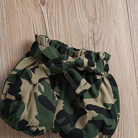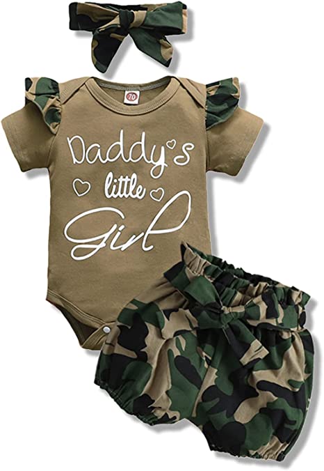 AMAWMW Daddys Little Girl Baby Clothes Ruffle Short Sleeve Romper Camo Bloomers Headband Newborn Infant Baby Girl Outfit
