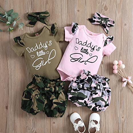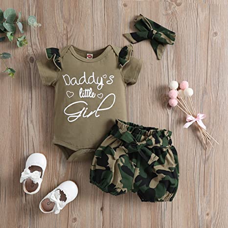 HomeBabiesGirl AMAWMW Daddys Little Girl Baby Clothes Ruffle Short Sleeve Romper Camo Bloomers Headband Newborn Infant Baby Girl Outfit