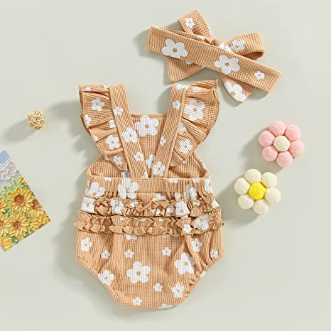Baby Girls Daisy Playsuits Bodysuit+Headband Print Halter Romper Floral Jumpsuit Infant Summer Clothes