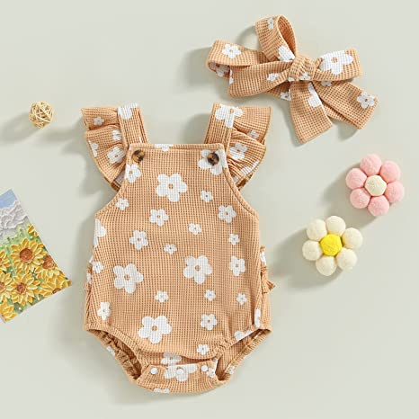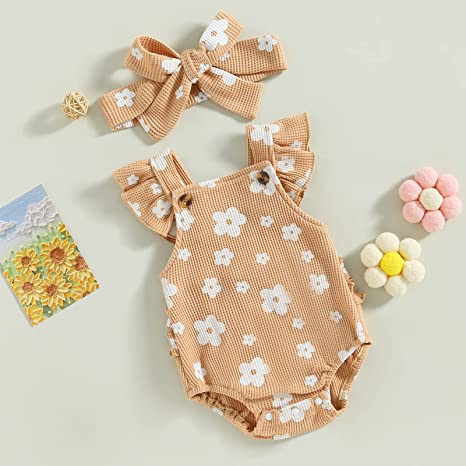 You can always get your perfect clothes for you cutes. Our sizing is precise and has been developed over years of making take home outfits for newborns and kids,Great for daily wear or photograph.This baby girls daisy print cotton linen ruffled sleeveless romper jumpsuit bodysuit with headaband infant summer clothes is a good gift for the baby, worth having ,so beautiful set for your little girls.