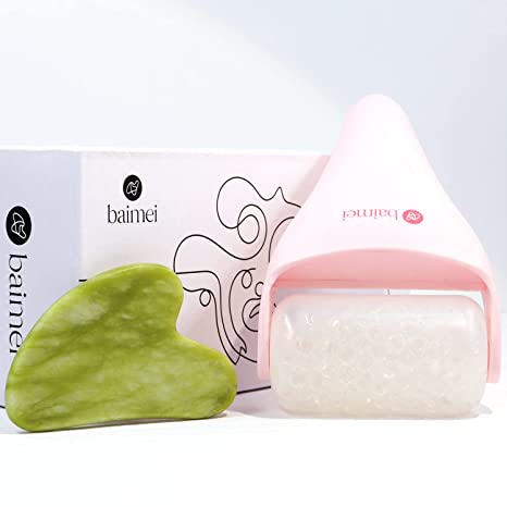 HomeSkin Care BAIMEI Ice Roller for Face and Gua Sha Facial Tools, Ice Face Roller Reduces Puffiness Migraine Pain Relief-Pink