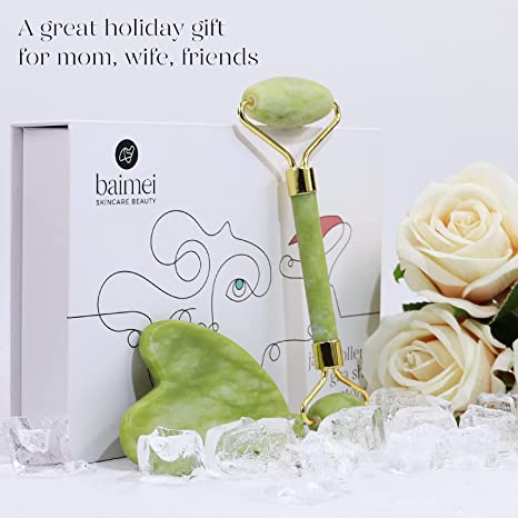 HomeSkin Care BAIMEI Jade Roller & Gua Sha Set Face Roller and Gua Sha Facial Tools for Skin Care Routine and Puffiness-Green