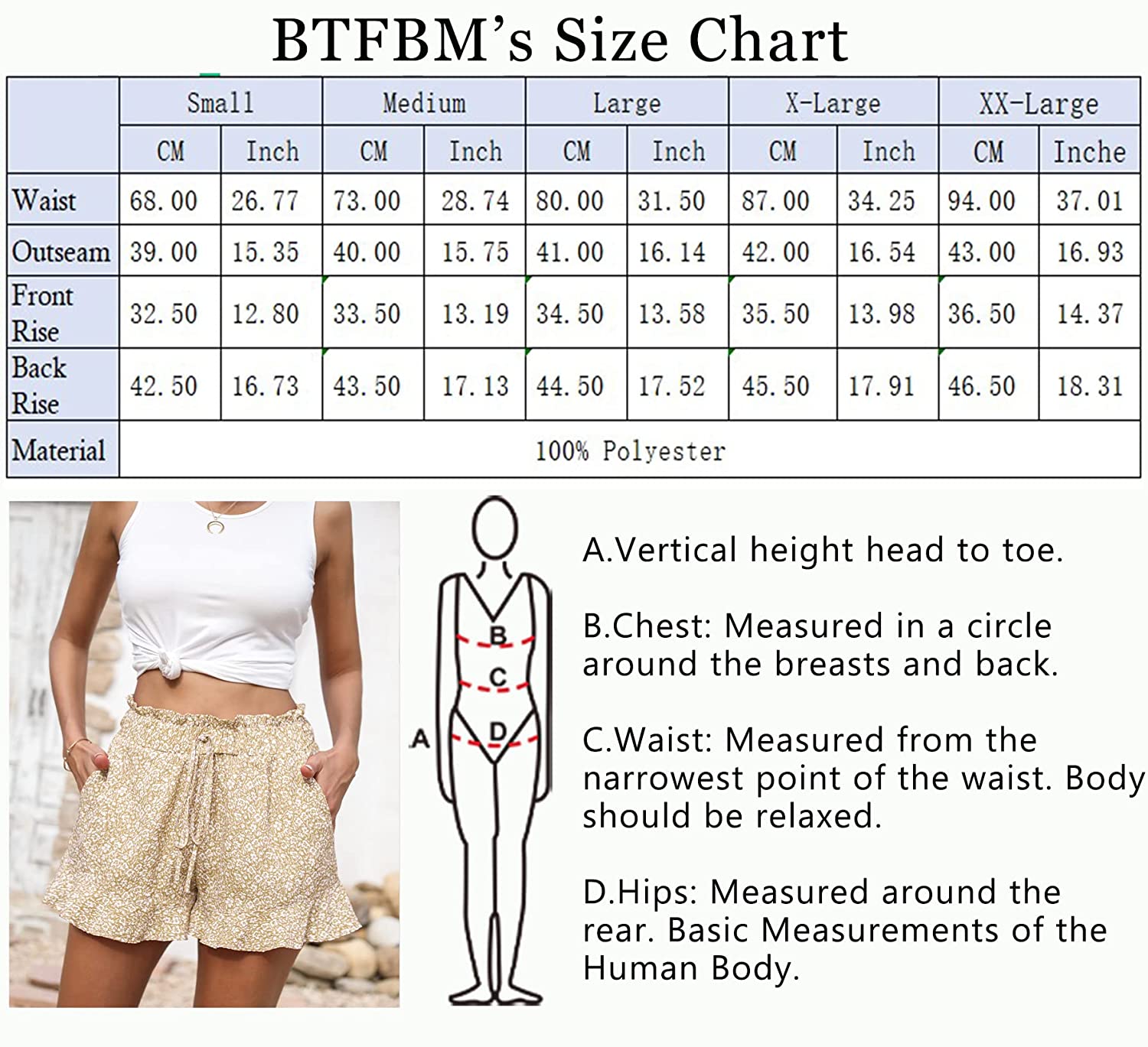 BTFBM Women’s Summer Shorts 2023 Floral Elastic High Waisted Belted Casual Beach Ruffle Short Lounge Pants with Pockets