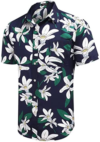 BOOMCOOL Hawaiian Shirt for Men Short Sleeves Printed Button Down Summer Beach Shirts for Men Clothing, Shoes & Jewelry