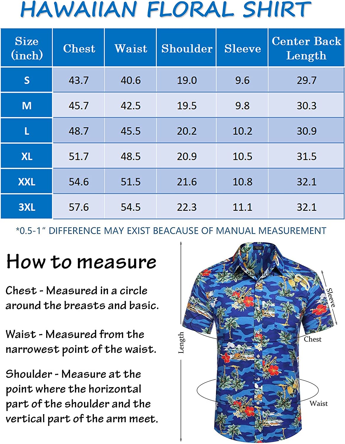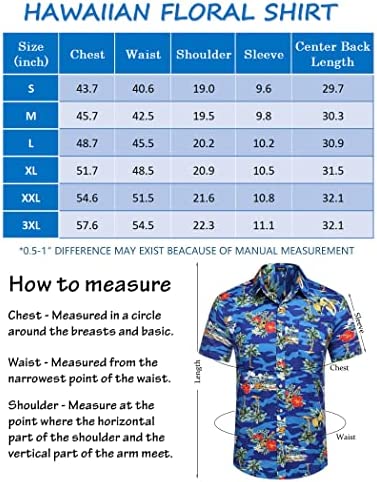 100% Polyester Imported Button closure Machine Wash 【HIGH QUALITY FABRIC】This hawaiian shirt made of soft and comfortable fabric, keeping you a skin friendly, breathable, lightweight and cool feeling. 【HAWAIIAN PRINT STYLE】The summer hawaiian shirt features with a tropical floral print, all over printing which brings you striking looking, vibrant prints add tropical appeal to this men cotton aloha shirts. 【STYLISH DESIGN】The men vacation beach shirt designed with loose fit, button up closure, short sleeve, spread collar and left chest pocket. A variety of hawaiian inspired patterns to choose from. It is also a great gift for your family members, friends and lover on special days or vacation. 【MUTIPLE OCCASIONS】Fashion tropical floral shirt perfect for hawaiian vacation, camp, beach, luau, cruise, honeymoon, party or any casual daily wear. Match sunglasses to create a fashionable leisure style, or pair with sandals and a sun hat for beachwear. 【WARM TIPS】Washing Max Temperature 40°C. Machine and hand wash are both available for the mens summer short sleeve shirts. Please refer to our size chart carefully before you order. Show more