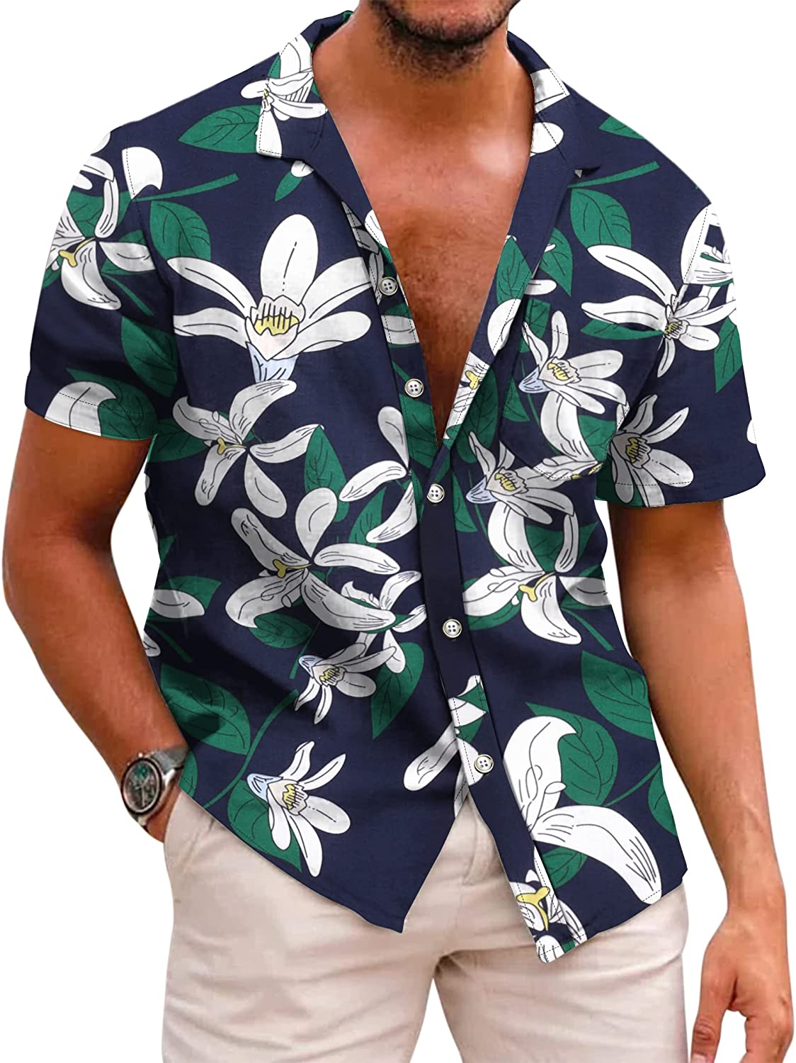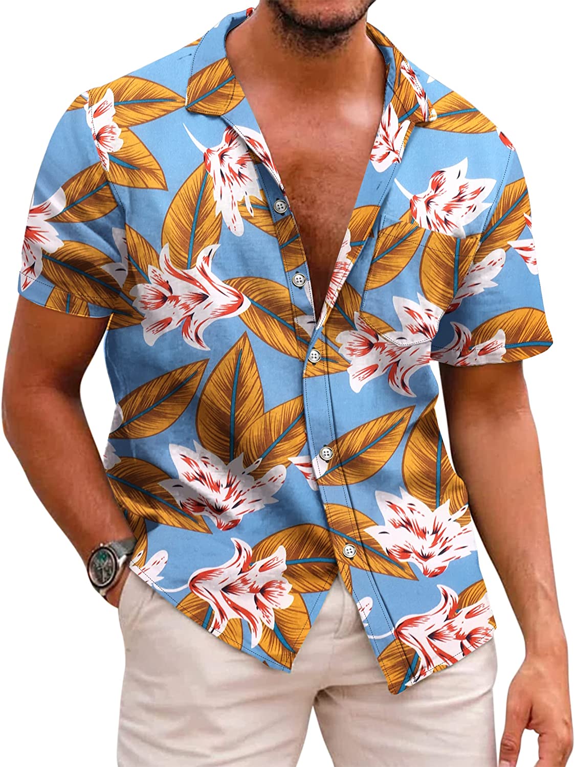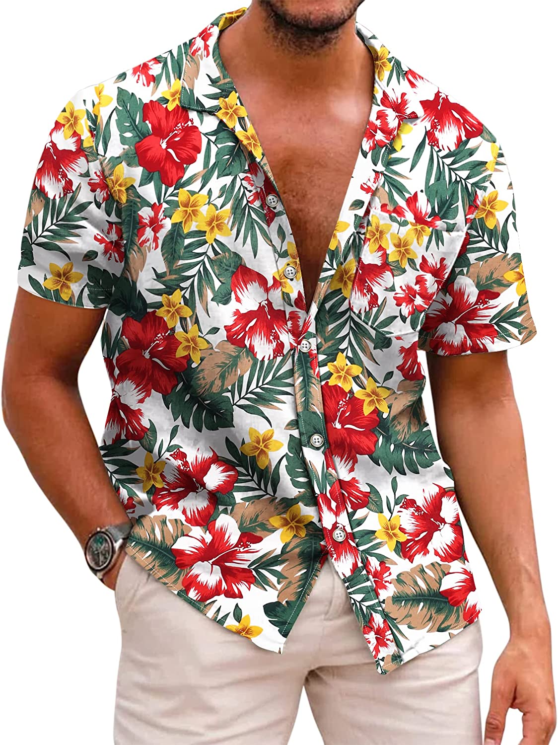 COOFANDY Mens Casual Button Down Shirt Short Sleeve Hawaiian Tropical Floral Shirt at Amazon Men’s Clothing store