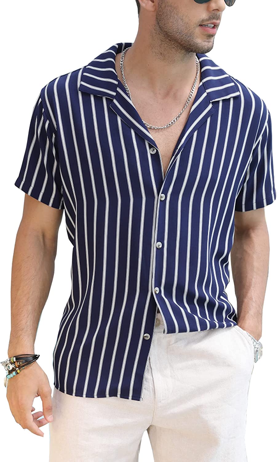 60 reviews for COOFANDY Mens Hawaiian Shirts Short Sleeve Striped Shirt Button Down Beach Shirts at Amazon Men’s Clothing store