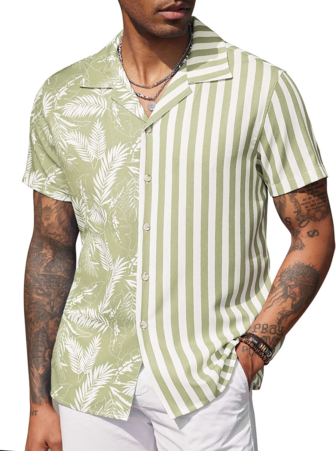 COOFANDY Mens Hawaiian Shirts Short Sleeve Striped Shirt Button Down Beach Shirts at Amazon Men’s Clothing store