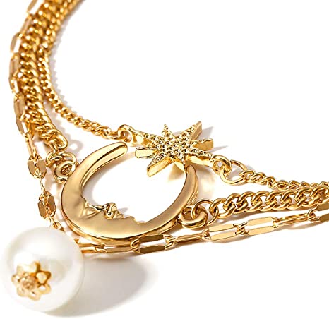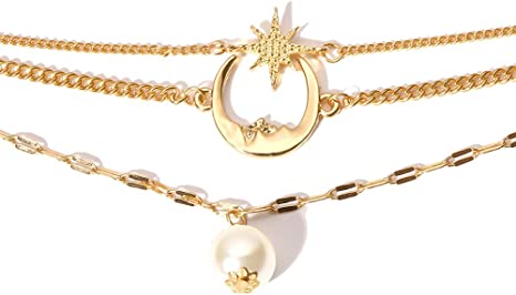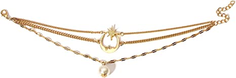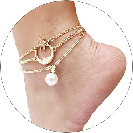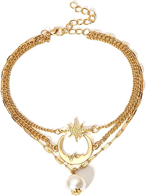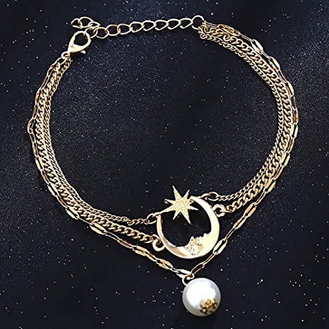 This beautiful anklet bracelet was handmade. It features with white pearl, gold color moon and star charm pendant. As always receive the best when you shop with us, because we craft all of our accessories with care.