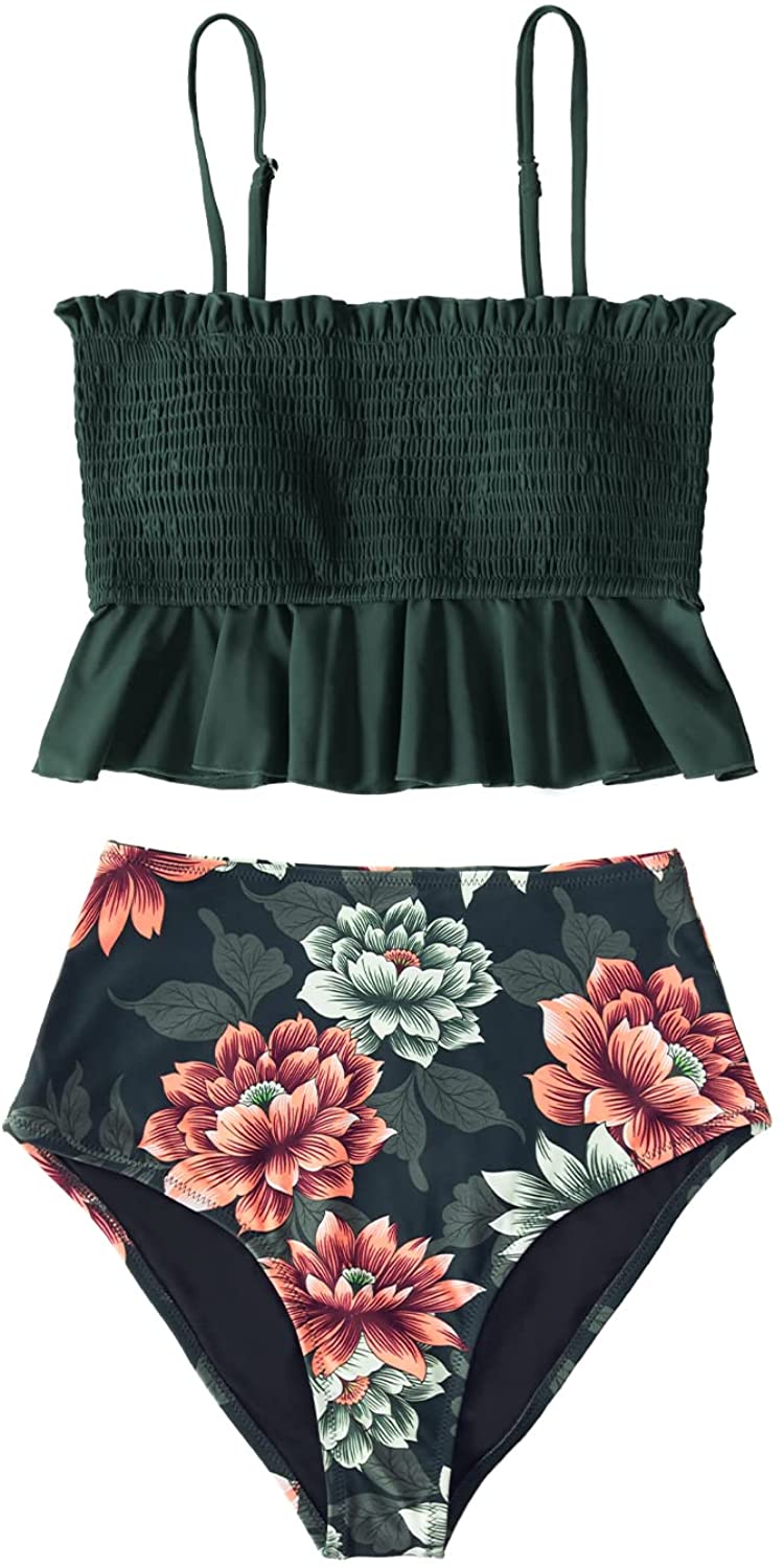 CUPSHE Women’s High Waist Bikini Swimsuit Ruffle Two Piece Bathing Suit