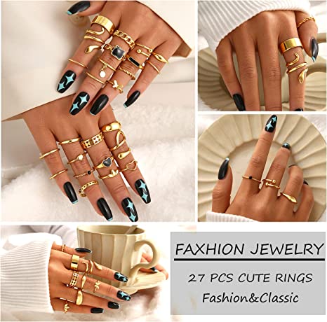 HomeWomenAccessories FAXHION 27 Pcs Gold Knuckle Rings Set for Women Girls, Vintage Stackable Boho Snake Finger Rings, Midi Hollow Rings Pack