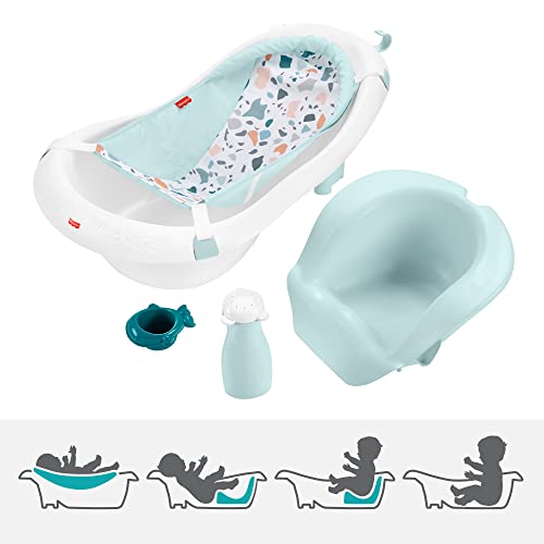 Fisher-Price 4-In-1 Sling ‘N Seat Bath Tub, Pacific Pebble, Baby To Toddler Convertible Tub With Seat And Toys