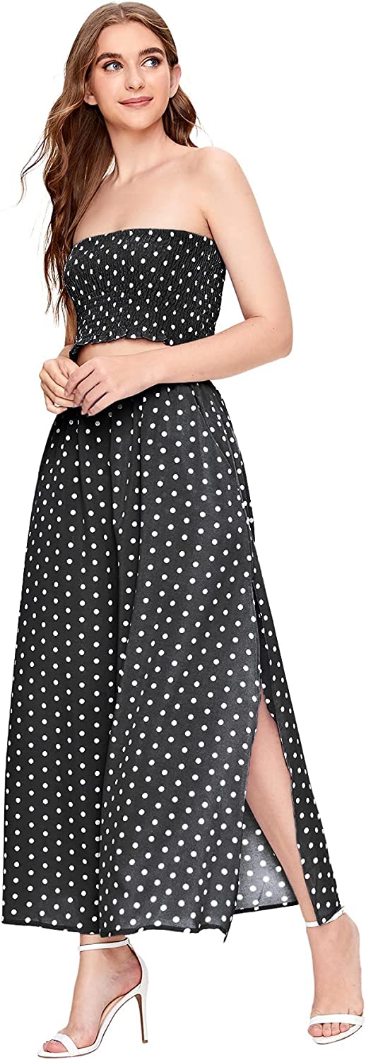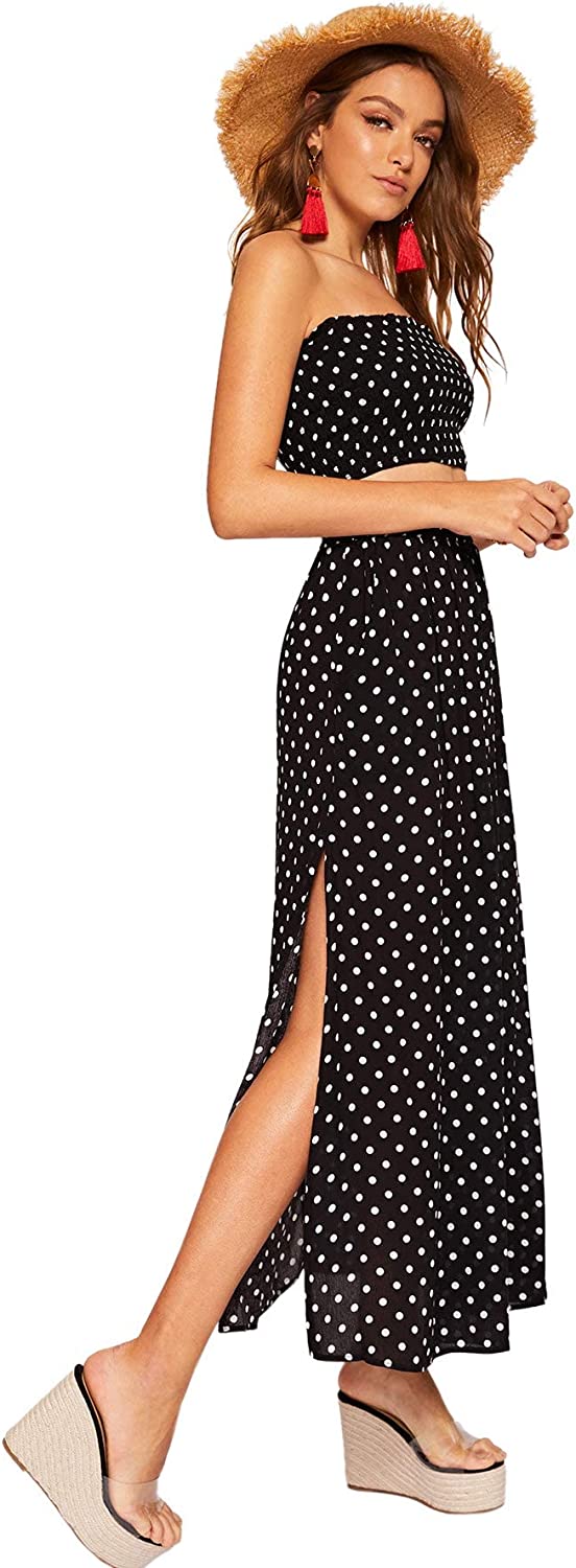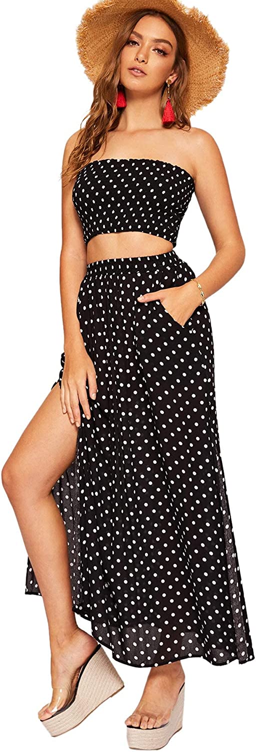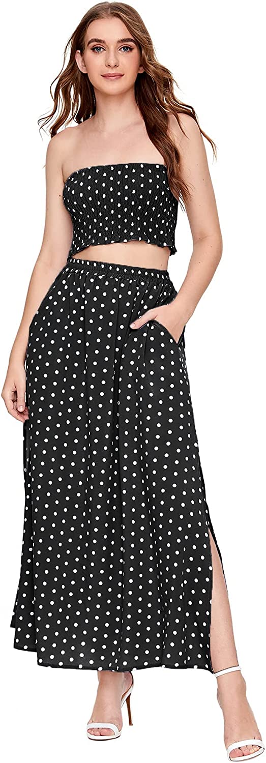 Floerns Women’s Summer Printed 2 Piece Outfit Crop Tube Tops and Split Long Skirt Set