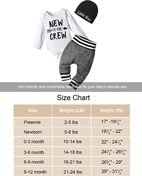 Fommy Newborn Baby Boy Clothes New to The Crew Letter Print Romper+ Pants+Hat 3PCS Outfit