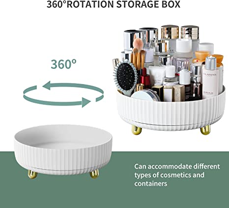 This rotating makeup organizer easily stores any size of cosmetics and skincare products that may be scattered on your dressing table or bathroom counter, no matter it is small or large.