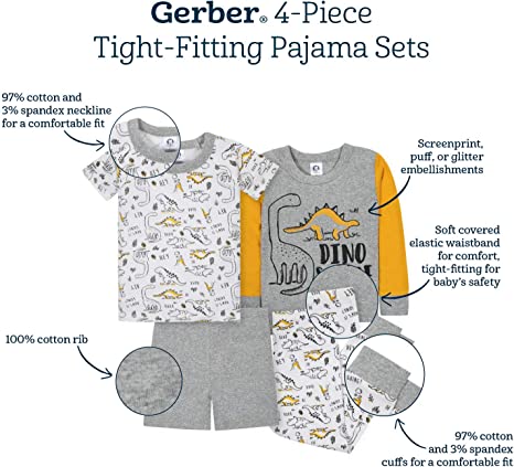 Gerber Baby Boys Toddler Snug Fit 4-Piece Pajama Set