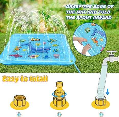 If you are looking for ways to entertain your Children outdoors during summer, instead of seeing them spending hours and hours just watching tv or playing games on their tablets and cell phones, this Splash Mat / Splash Pad is going to be one of the best purchases you’ll ever make. Our Splash Pad is not only fun but provides a safe gaming environment. Best for Cooling Children in a Hot Summer. Perfect for Games, Backyard Activity or Party