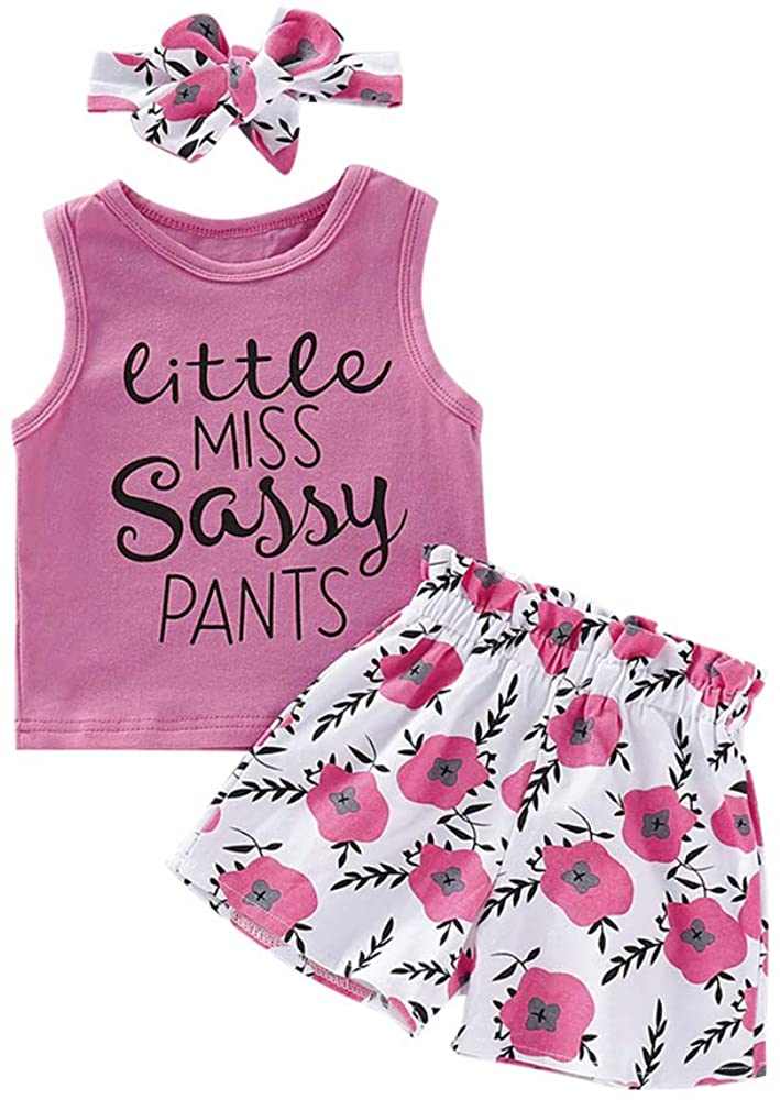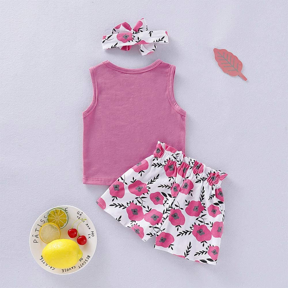 Hipea Toddler Baby Girl Outfits Flower Tops Sleeveless Vest Shorts Headband Summer Clothes Set
