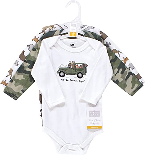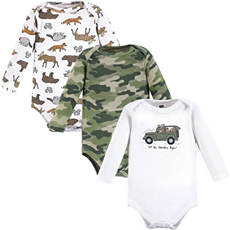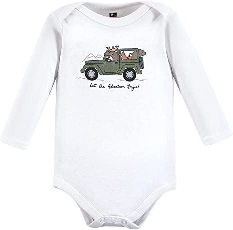 Hudson Baby long-sleeve bodysuits are an essential part of baby’s wardrobe. Our bodysuits feature adorable prints, embroideries, stripes and solids and provide a comfortable base layer that’s great for pairing with pants, shorts, or even wearing under outfits. Our bodysuits are comfortable and cozy for all-day, everyday wear for your little one.
