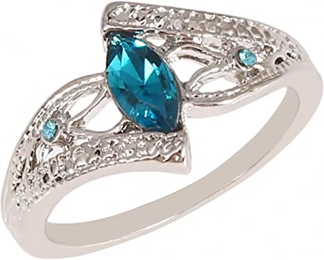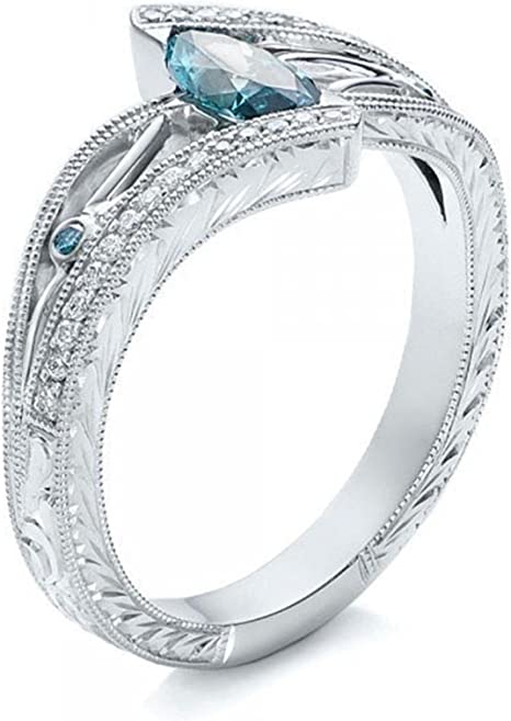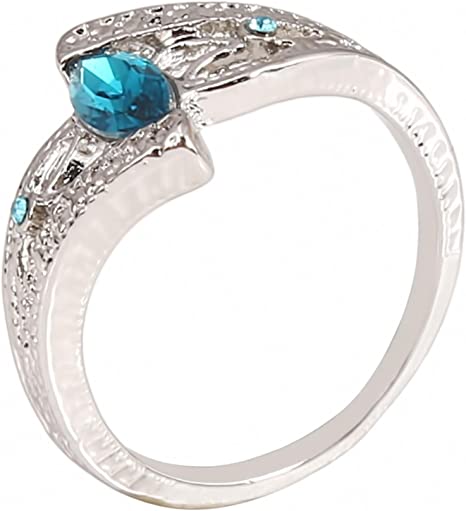 Iumer Women Ring Inlaid with Oval Artificial Gems Rhinestone Shiny Ring Jewelry Birthday Gifts (Lake Blue, Size 8)