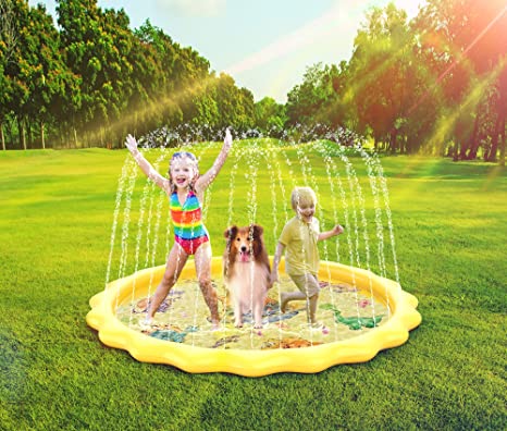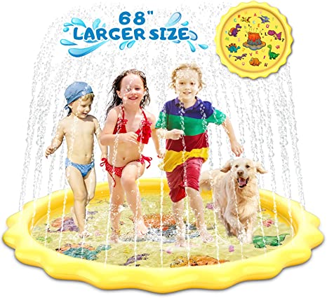 Kids Sprinkler, Splash Pad for Toddlers 3-15Y Summer Outdoor Baby Splash Play Mat 68″ Kids Swimming Pool Water Toys for Backyard Fun Games Learning Party Children Toddlers Boys Girls Dogs Kids(Yellow)