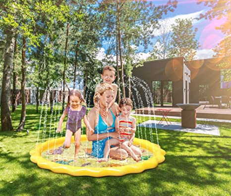 The GODR7OY splash pad isn’t your standard baby pool. It’s a 68″ water park in your backyard! Hook it up to the hose and your yard will be the envy of the neighborhood. This kids sprinkler is overflowing with learning, fun and some quality bonding time for you and your toddlers. Complete with child-friendly features and a whopping 68″, you and your kiddos can safely splash in the comfort of your own backyard. Great for those kiddos who aren’t quite big enough to swim!