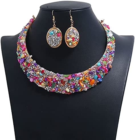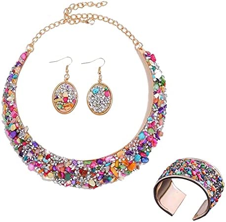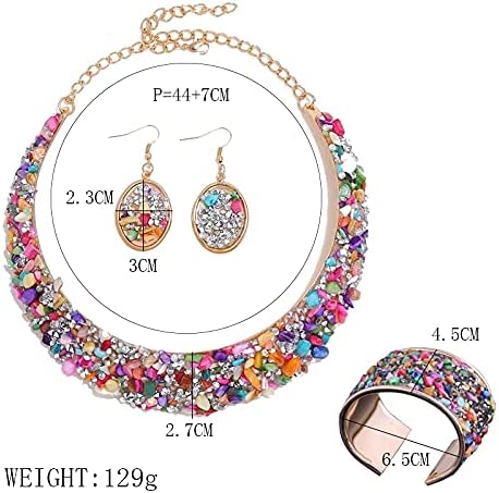 【SIZE】: The necklace has a lobster claw clasp which is adjustable, very easy to put on and take-off. The product has a circumference of 45cm and an additional 5cm extension chain, the size of the earrings is 3cm, the diameter of the bracelet is 6.5cm and the width is 4.5cm. 【QUALITY AND SAFETY】:Jewelry set are made of high-quality metal alloys, which will not irritate the skin and cause allergies. The color on the necklace is completed by electroplating, which can ensure that the color of the necklace will not fade easily. 【ETHNIC STYLE】: The statement bib collar necklace designed in bohemian ethnic style, this special design is born to match your unique beauty. 【FASHION COLLOCATION】:The necklace can be used at party dances or weddings. It can provide more ways to match your daily wear. This is not just a necklace, but a different style, stylish and beautiful. 【AFTER-SALES SERVICE】:What you should know is that when the necklace you received is defective, you can contact customer service to exchange it for you. After all, the necklace will inevitably appear to be worn during transportation. If after you received the necklace, it does not satisfy you, you can refund the order.
