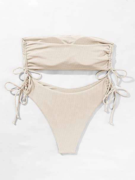 Rib Drawstring Side Bandeau Bikini Swimsuit Set