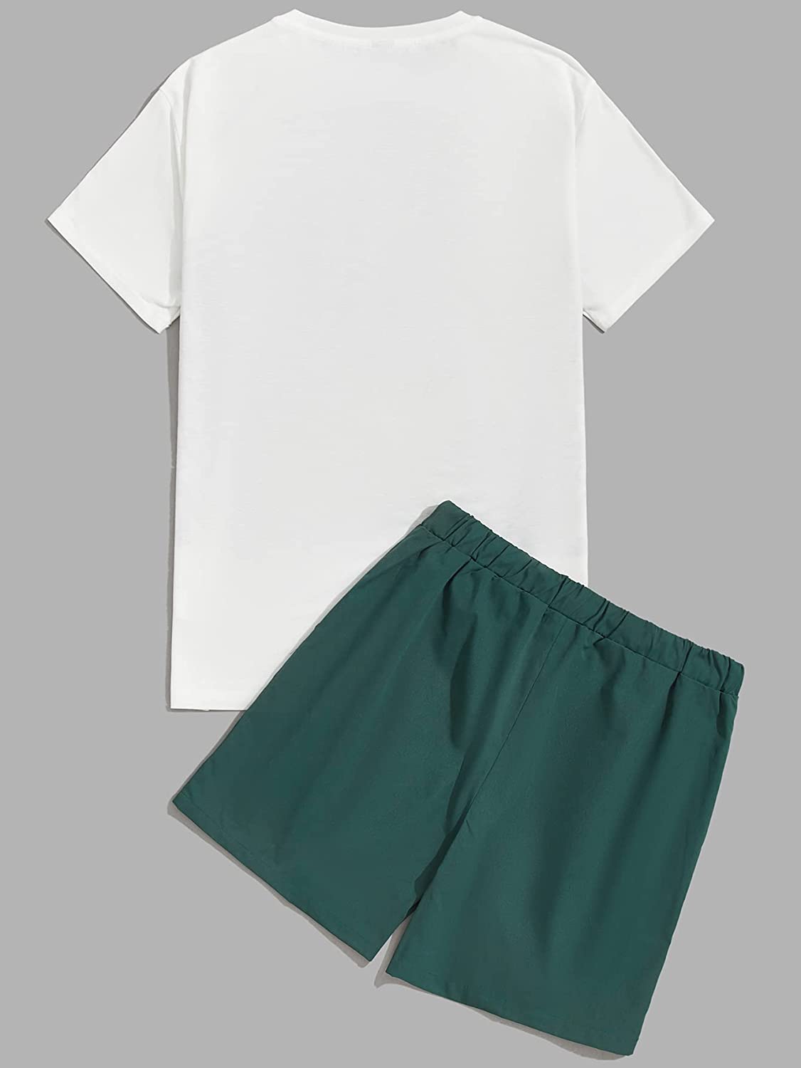 Romwe Men’s 2 Piece Outfits Tropical Print Short Sleeve Button Down Shirt and Shorts Set Green and Black XL at Amazon Men’s Clothing store