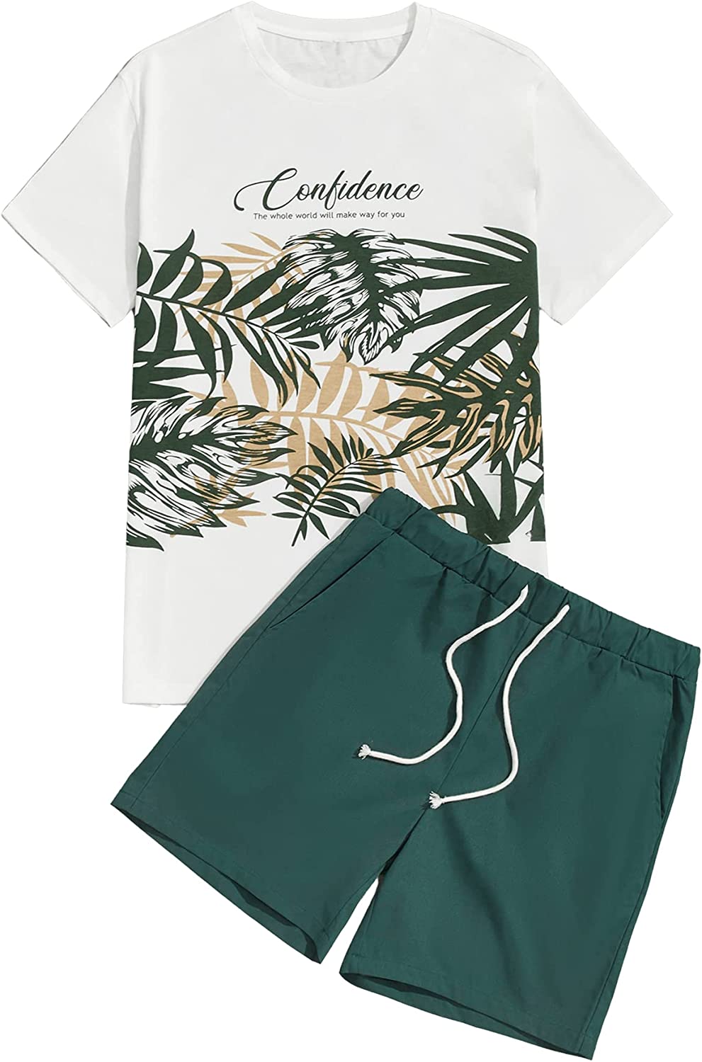 Milumia Men’s Tropical Printed Short Sleeve Tee and Drawstring Pocket Shorts Set at Amazon Men’s Clothing store