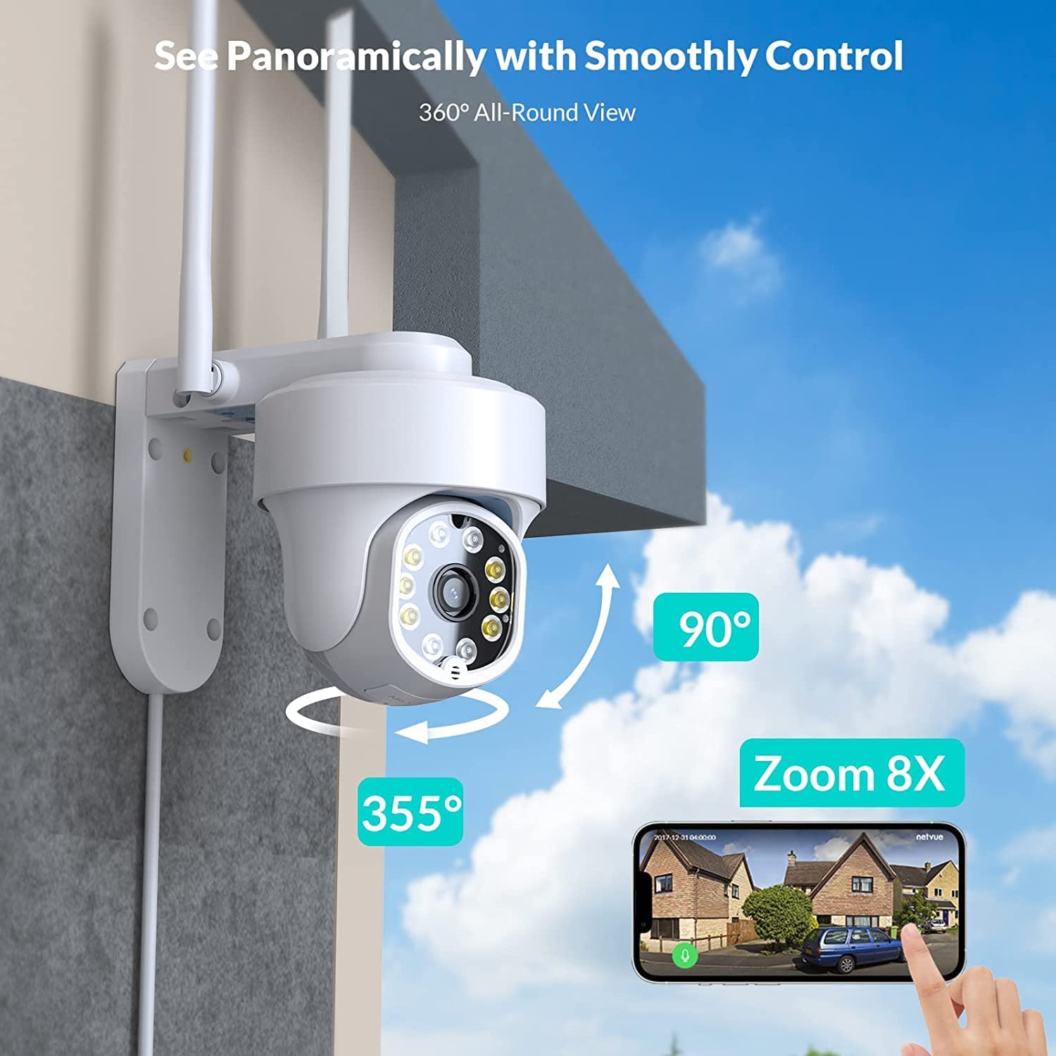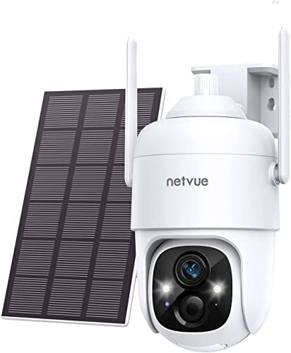 HomeWireless Products NETVUE Solar Security Cameras Wireless Outdoor 3MP Camera 2.4G WiFi 360° View PTZ. Strobe Light/Spotlight Home Security System with Motion Detection and Siren, Two-Way Audio, Color Night Vision Electronics