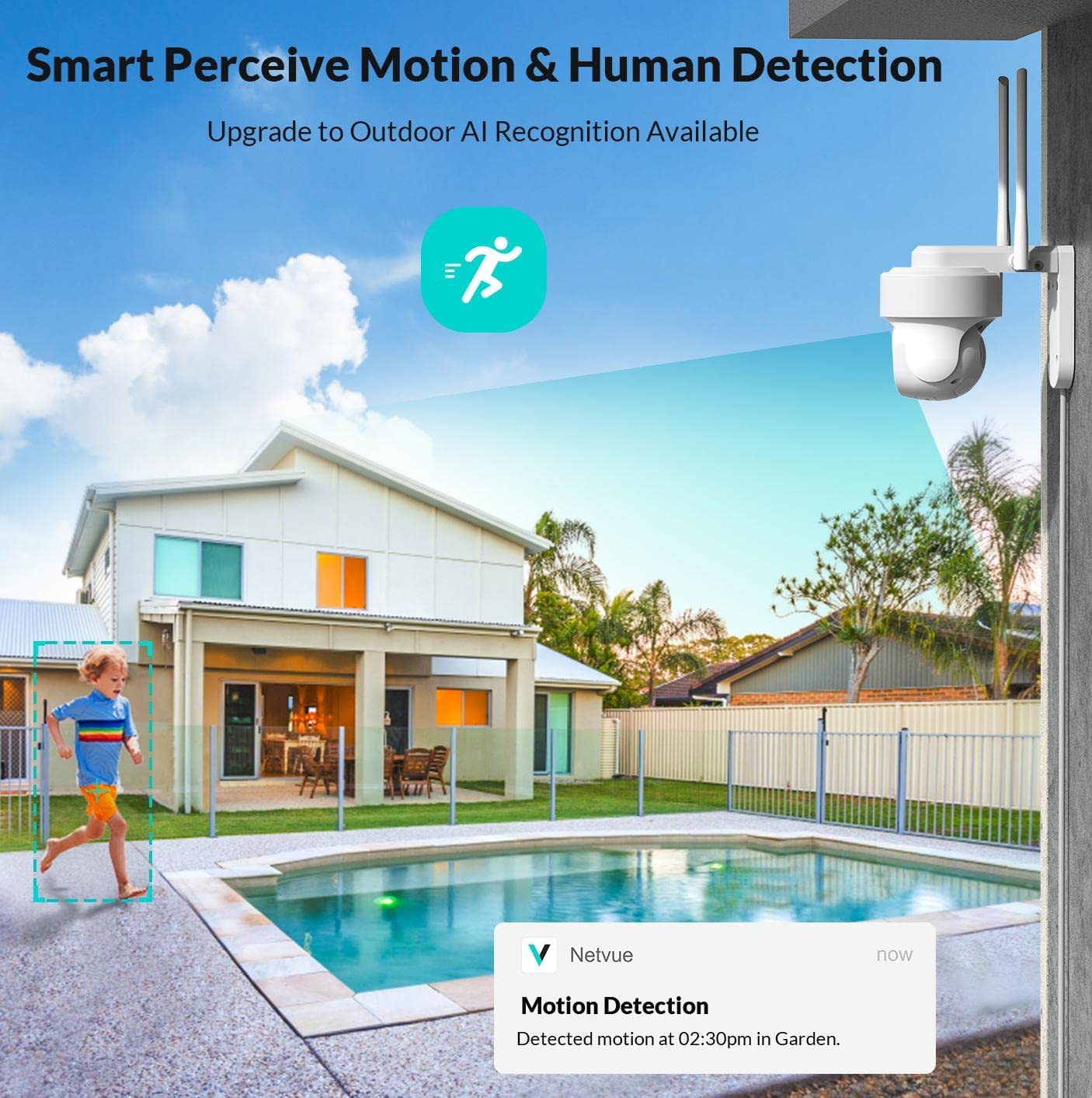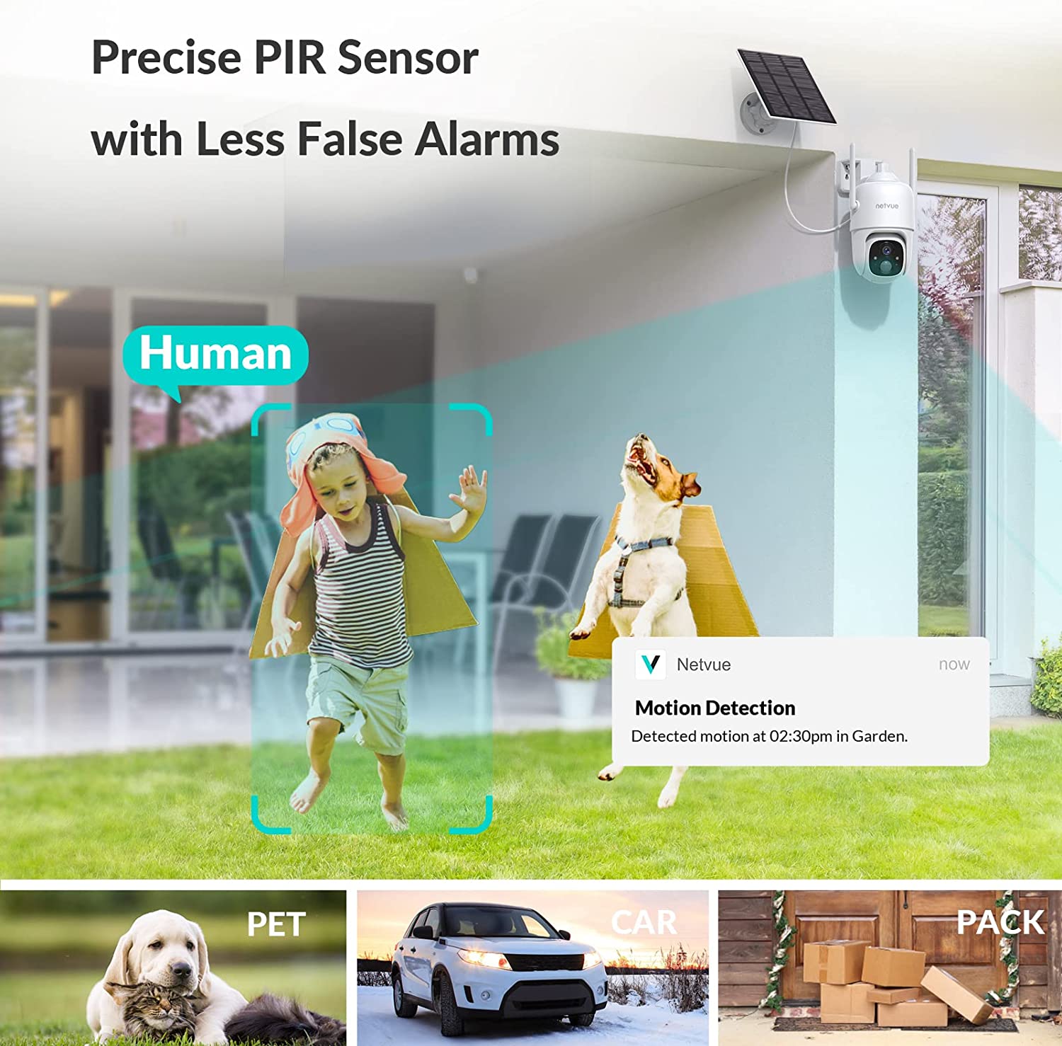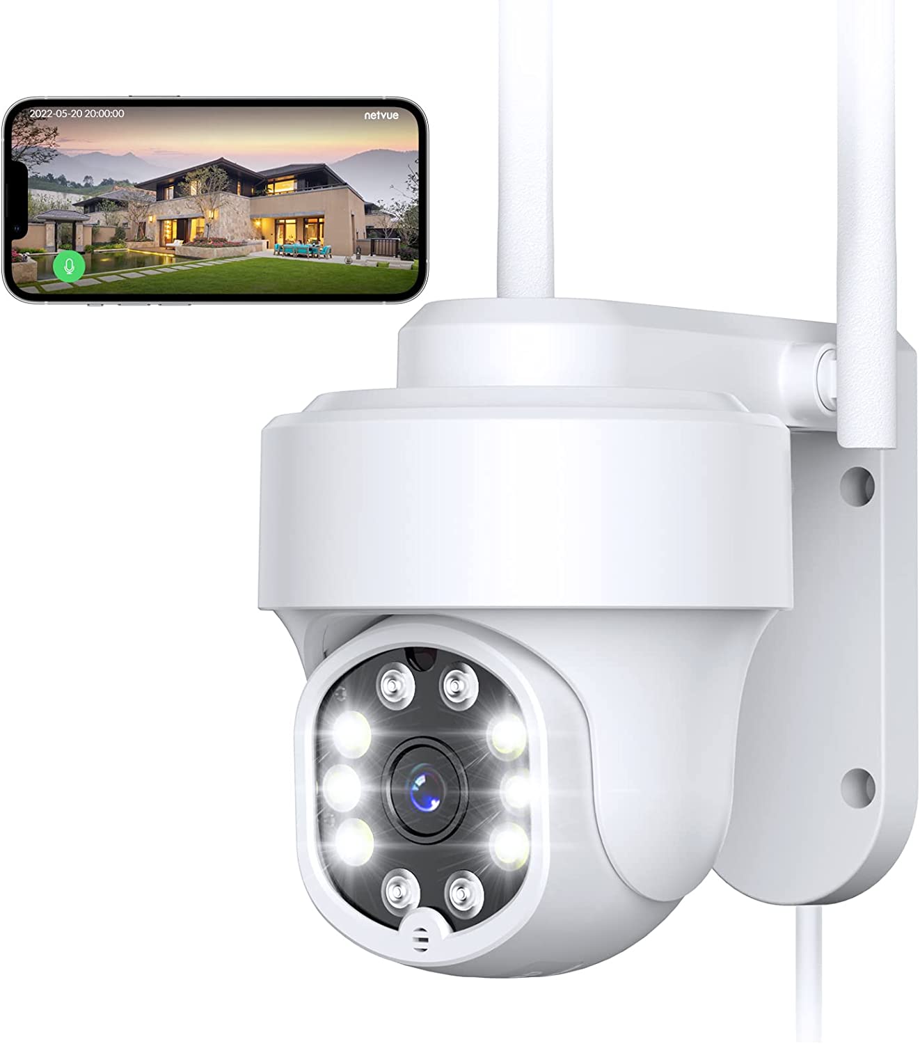 About this item 【2K 3MP & HD Color Night Vision 】3MP picture quality allows you watch and record videos with more clear details day or night. Spotlight and infrared light are optional to achieve color or infrared night vision. With the advanced CMOS sensor and spotlight, this security camera outdoor provides properly exposed video without color distortion, producing sharp, clear footage for more visual details 【Solar Powered & Wire-Free & 360°】 The solar panel will charge security camera with direct sunlight. No circuit wiring hassles, you can place it anywhere. The solar security camera is also equipped with battery inside, which provide extra 4-6 months backup battery life. 365 days Non-stop power to keep an eye on what matters. Keeping 2.4GHz WiFi on, you will never miss a thing under the 360° Field of View of the camera. 【Advanced AI Detection & 2-Way Audio】 You will know happening at the moment motion is detected by receiving instant notifications, and you can hear and talk to anyone in view of the solar wireless security camera with superior audio. No need to worry about irrelevant alerts, the advanced smart AI Skill of the Sentry plus you can choose what you care to reduce false alarms. You can also customize the sensitivity of the detection or ambient light. 【Ward off Intruders & Enhanced WiFi Antenna】 The strobe light, integrated spotlight or built-in siren will be activated once the outdoor security camera detects the intruders, even in dark areas you can see clearly. At the same time, it is equipped with a high-gain 4dbi WiFi antenna and 2.4G WiFI transmission, which can receive your data in a wider range. The network signal has good wall penetration, and strong anti-interference ability, and realizes the security protection for the whole year. 【Secure Storage & Weather-resistant】 IP66 certified to withstand rain, sun, heat and cold. Support 8-128GB micro SD card (not included) and free 7-day trial cloud storage. All the videos by NETVUE solar wireless security camera are encrypted, nobody will get it without your permission. 【Explore more advanced features】Netvue explores and develops more cloud-based and AI skill-based features to meet different users’ needs, such as cloud storage, animals/human /package/vehicle recognition…etc. You can subscribe to these services as needed. 🔔Cloud service and AI recognition services require subscription fees.