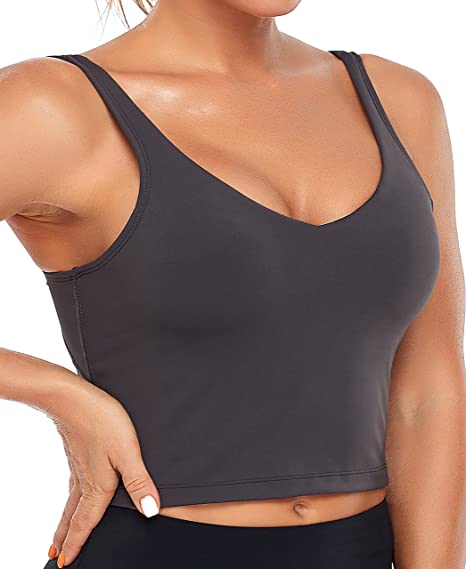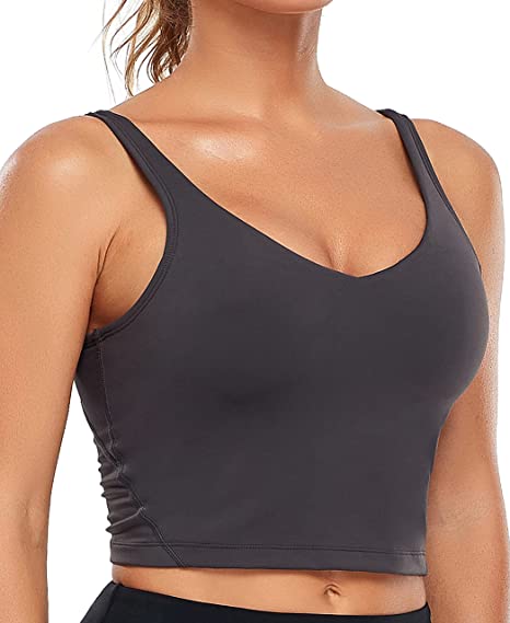 Oalka Sports Bra Womens Longline Padded Crop Tank Yoga Bras Workout Fitness Top