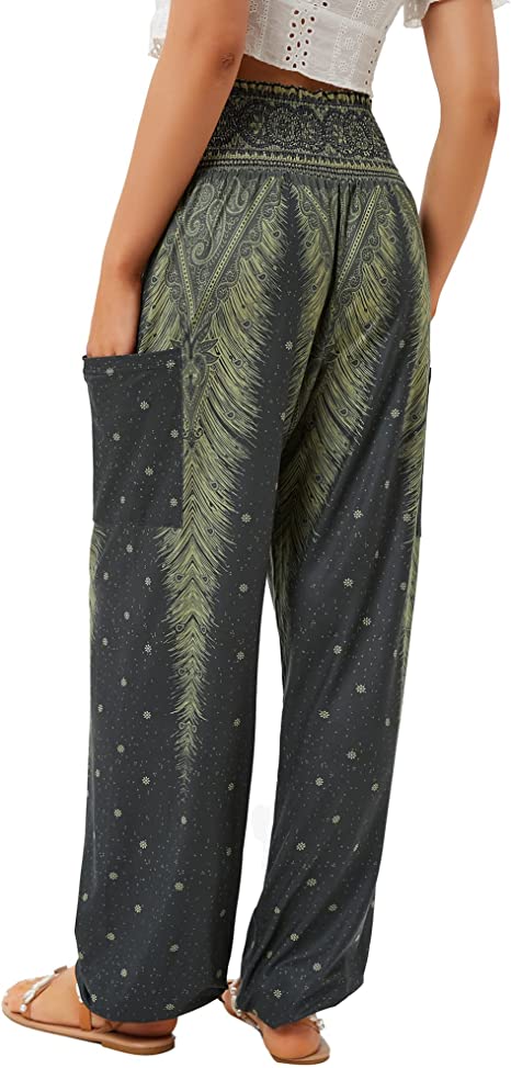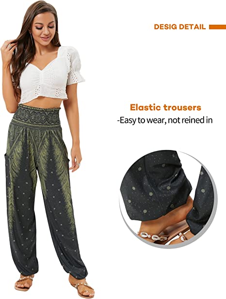QIANXIZHAN Women’s Harem Pants, High Waist Yoga Boho Trousers with Pockets