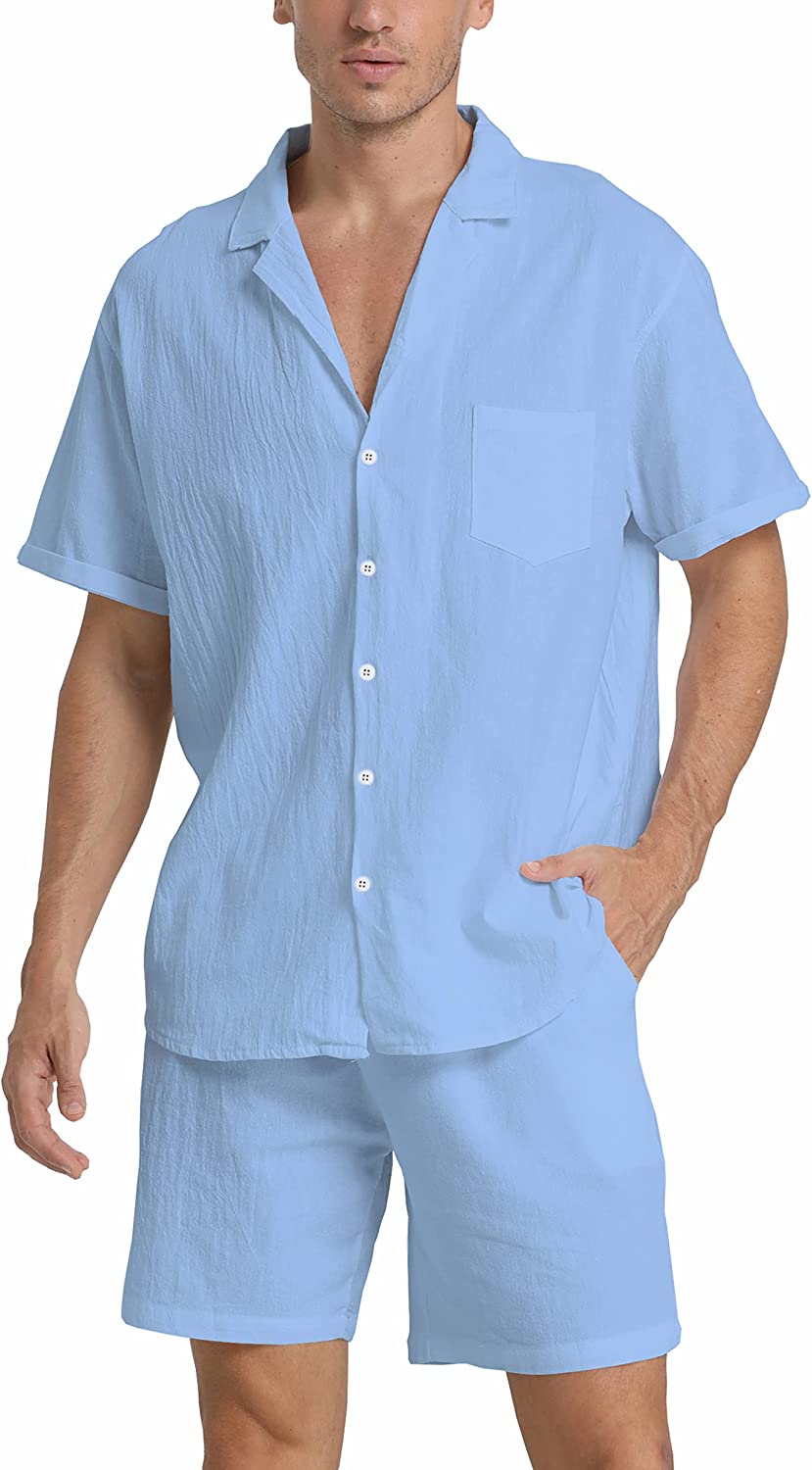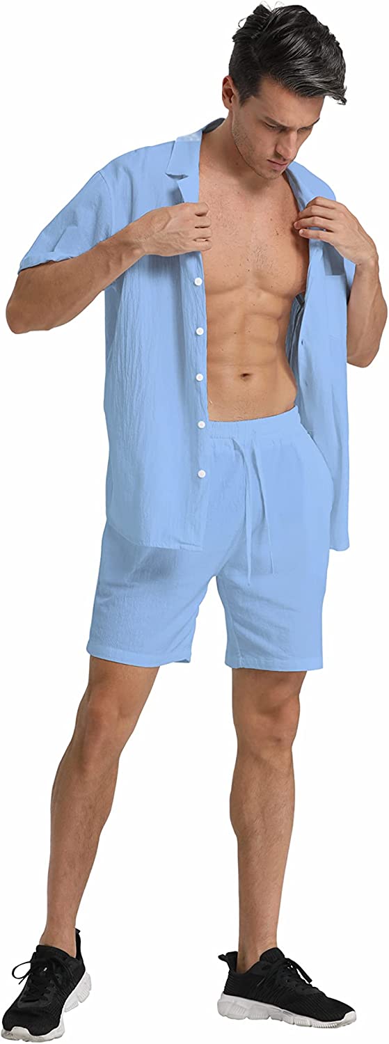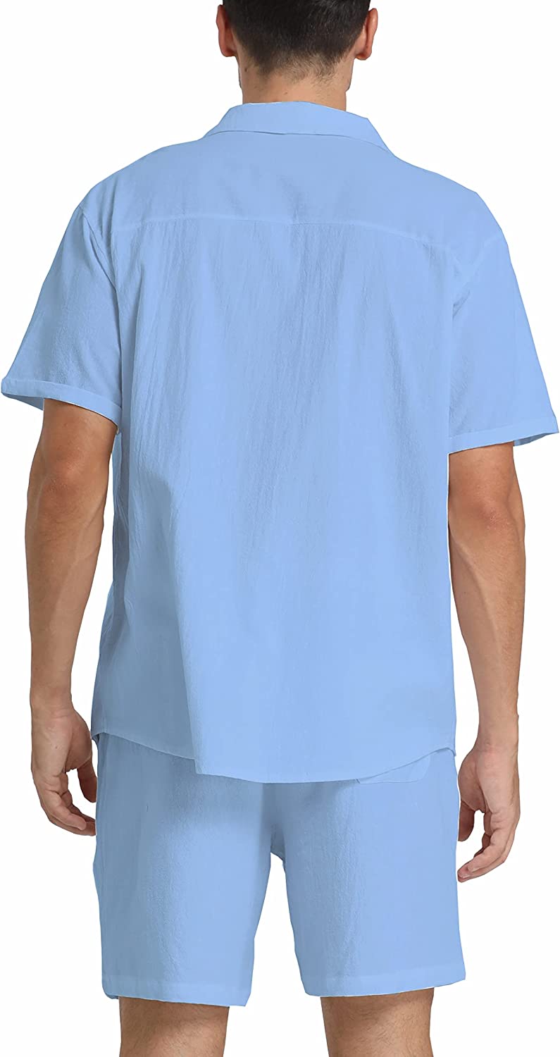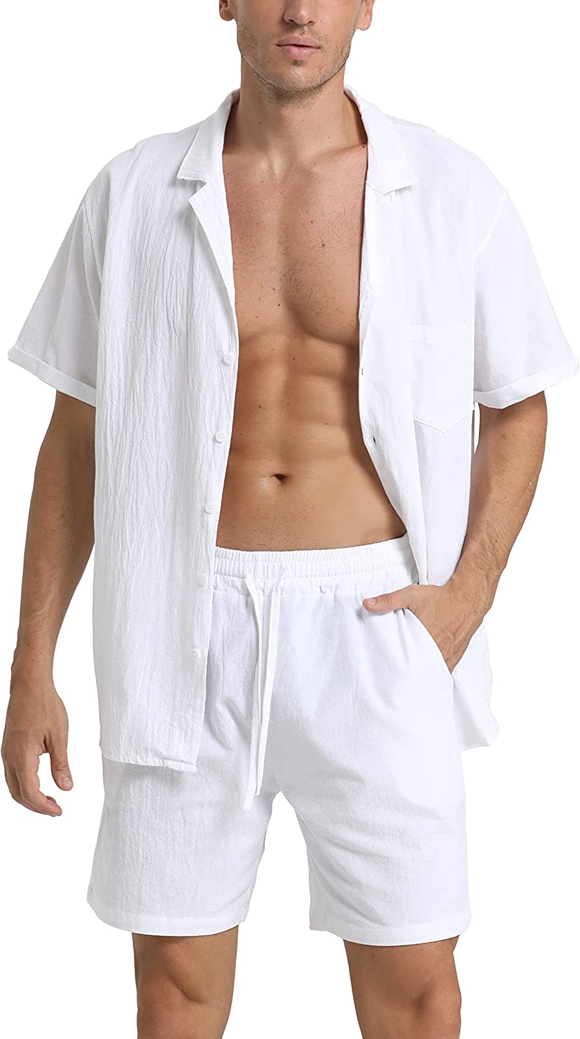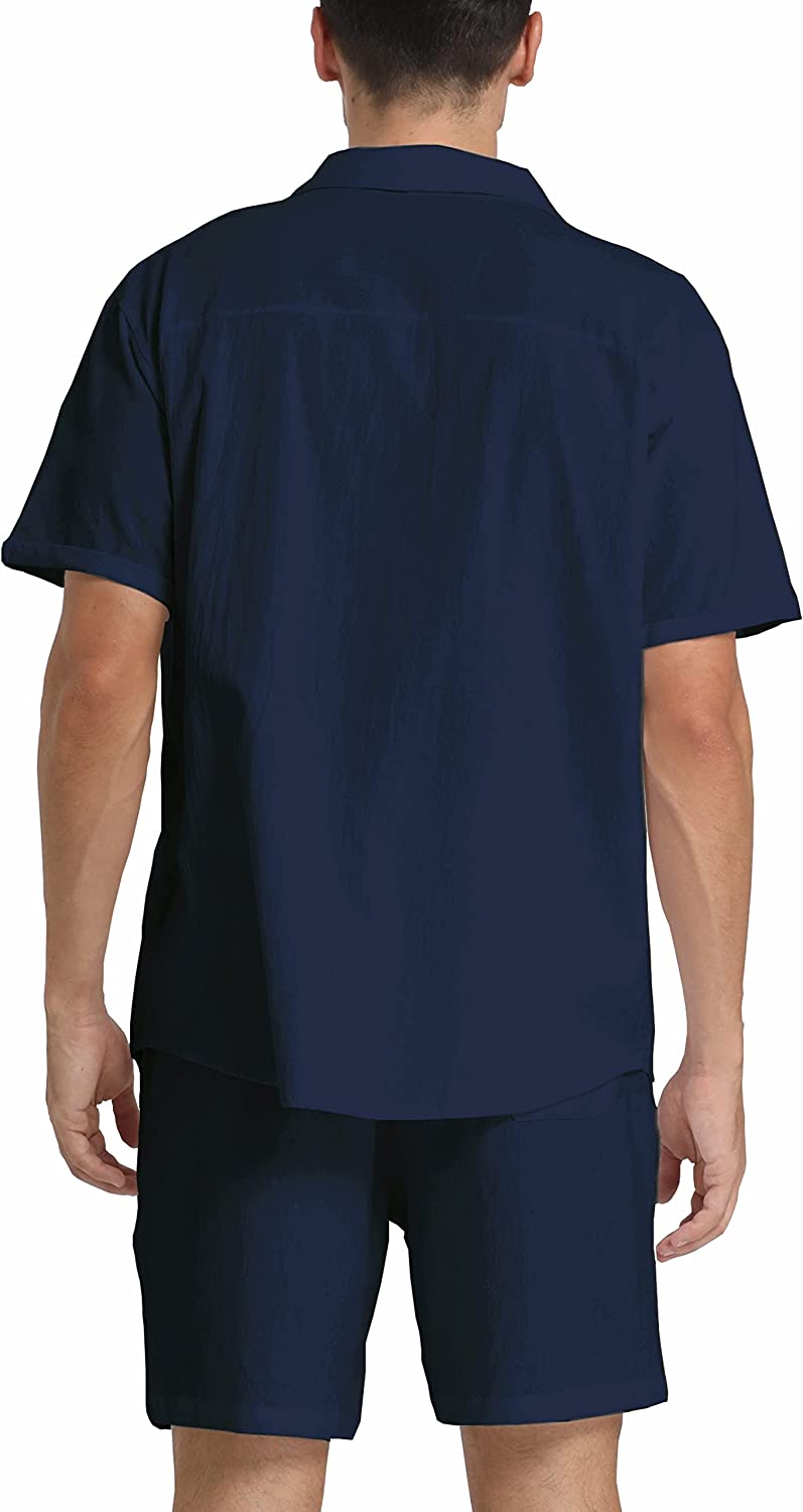95% Cotton,5% Linen Drawstring closure Hand Wash Only Fabric&Color– 95% Cotton,5% Linen;Men’s shirt and short sets are available in White,Army Green,Black,,Grey. Style–camp-collar shirt,which can be matched with different face shapes,bow ties and ties.mens button down short sleeve shirt with a loose fit for a more casual,comfortable style.Linen pants men,Mens elastic waist pants,fastened with a drawstring;two front slip pockets and one rear slip pocket for easy storage of essentials. Occasion–Casual style,can be worn at Holiday/Travel/Party/Dating/Dinner/Birthday/Wedding/Music Festival/Camping/Fishing/Beach/Home Office. Suitable for the crowd–vacationer,students,office workers;Short sleeve button up shirts for men can be used as Valentine’s Day holiday gifts for boyfriends,husbands,fathers,etc. Season–Best for summer,spring and autumn,indoor home in winter;linen shirts for men natural texture,light and breathable,cool and comfortable to touch.