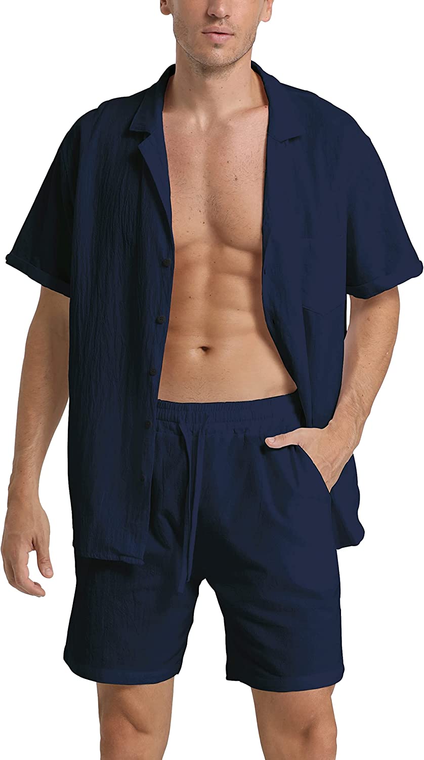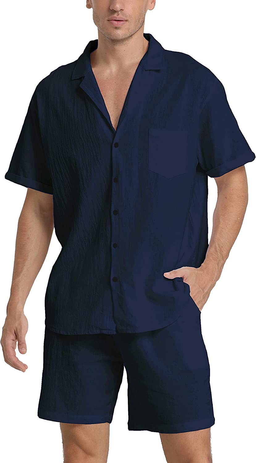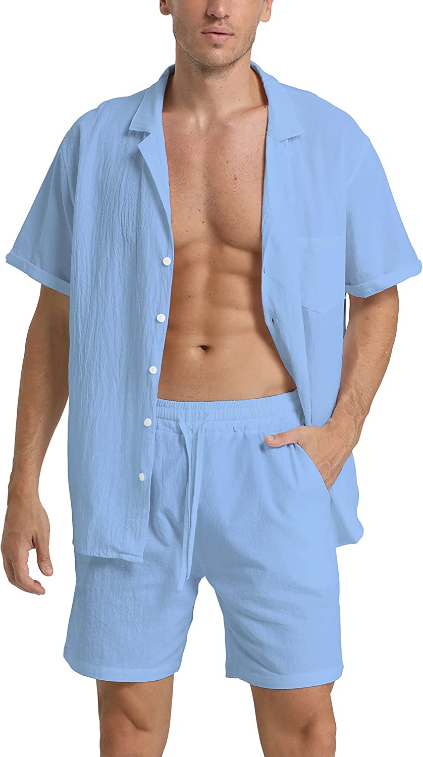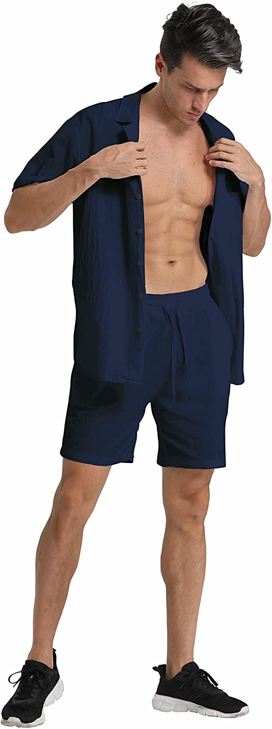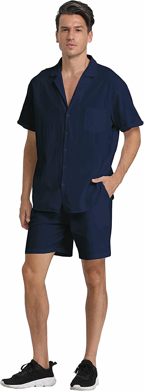 95% Cotton,5% Linen Drawstring closure Hand Wash Only Fabric&Color– 95% Cotton,5% Linen;Men’s shirt and short sets are available in White,Army Green,Black,,Grey. Style–camp-collar shirt,which can be matched with different face shapes,bow ties and ties.mens button down short sleeve shirt with a loose fit for a more casual,comfortable style.Linen pants men,Mens elastic waist pants,fastened with a drawstring;two front slip pockets and one rear slip pocket for easy storage of essentials. Occasion–Casual style,can be worn at Holiday/Travel/Party/Dating/Dinner/Birthday/Wedding/Music Festival/Camping/Fishing/Beach/Home Office. Suitable for the crowd–vacationer,students,office workers;Short sleeve button up shirts for men can be used as Valentine’s Day holiday gifts for boyfriends,husbands,fathers,etc. Season–Best for summer,spring and autumn,indoor home in winter;linen shirts for men natural texture,light and breathable,cool and comfortable to touch.