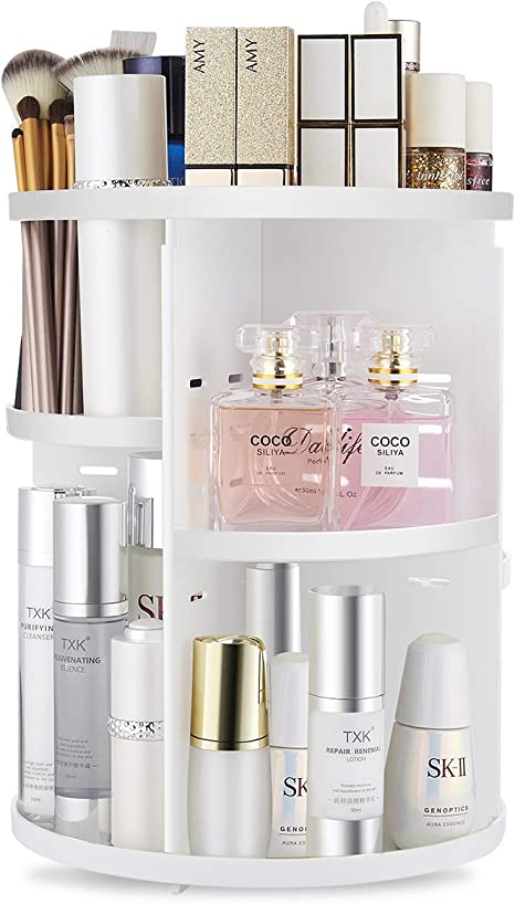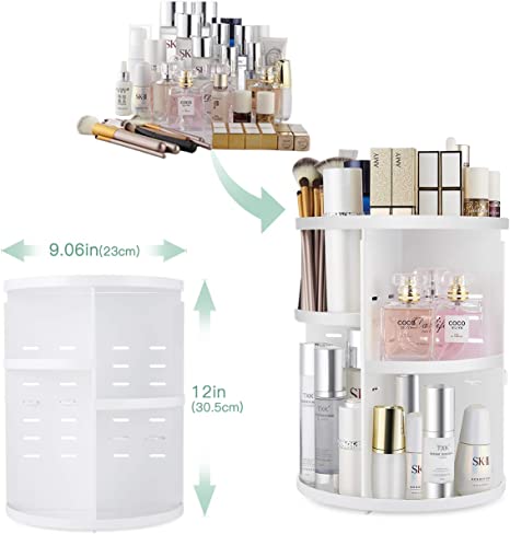 HomeSkin Care seinlife 360 Rotating Makeup Organizer,DIY Adjustable Spinning Holder,Foldable Cosmetic Storage Display box,Large Capacity Make up Caddy Shelf,Fits Countertop Vanity and Bathroom (WHITE)