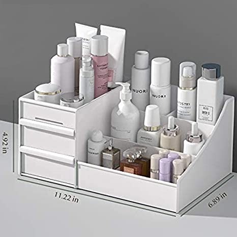 HomeSkin Care skin care organizer,Makeup Desk Organizer With Drawers,Countertop Organizer for Cosmetics,Vanity brush with Holder for Lipstick, Brushes, Eyeshadow, and Jewelry Desktop Finishing Dresser (White)