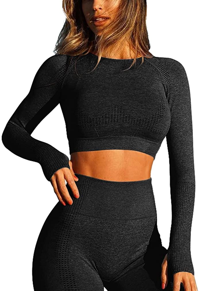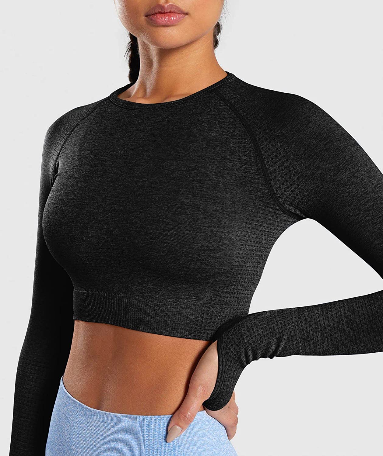 Aoxjox Long Sleeve Crop Tops for Women Vital 1.0 & 2.0 Workout Seamless Crop T Shirt Top