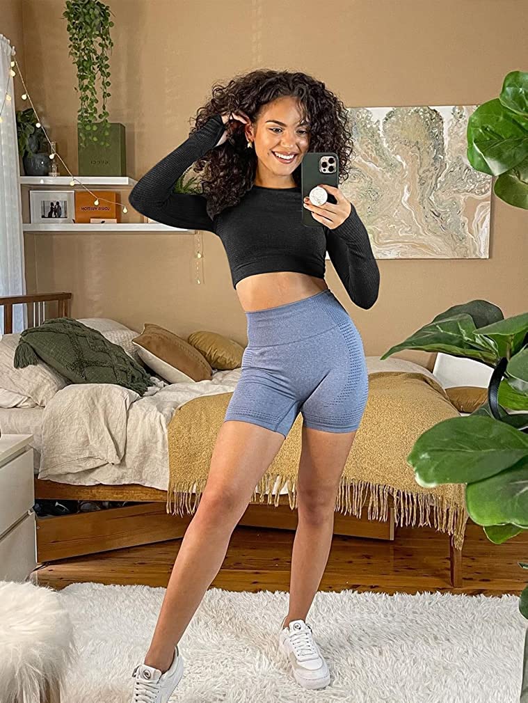 Stylishine Women Seamless Long Sleeve Bodycon Crop Tops Stretch Yoga Athletic Shirts Control Workout Gym