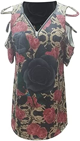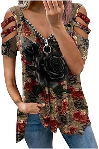 HomeWomenSummer Clothes Summer Women Cold Shoulder T-Shirt Fashion Casual Loose Fit Sexy Tunic Tops Short Sleeve Vneck Zipper Blouses Tees at ORN Women’s Clothing store