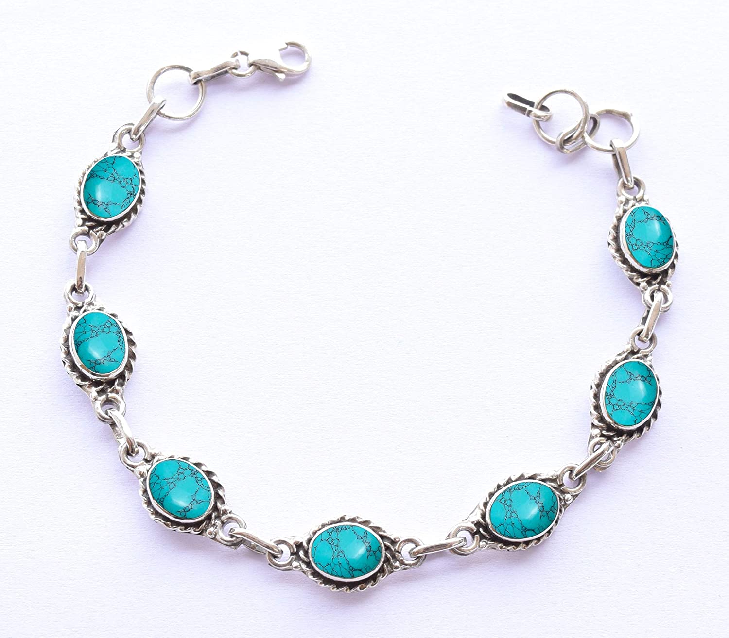 Be the first to review “Turquoise Stone Bracelets Silver Overlay For Women Girl Gifts – Gemstone Adjustable Handmade Link Bracelets Christmas Gifts For Her” Cancel reply