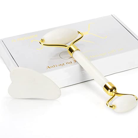 HomeSkin Care YLTNEUQER Jade Roller Gua Sha Set – Facial Skin Care Set, Facial Beauty Tools, Natural Beauty Skin Care Tools, Face Roller Massager for Face, Neck, and Eye Treatment (White)