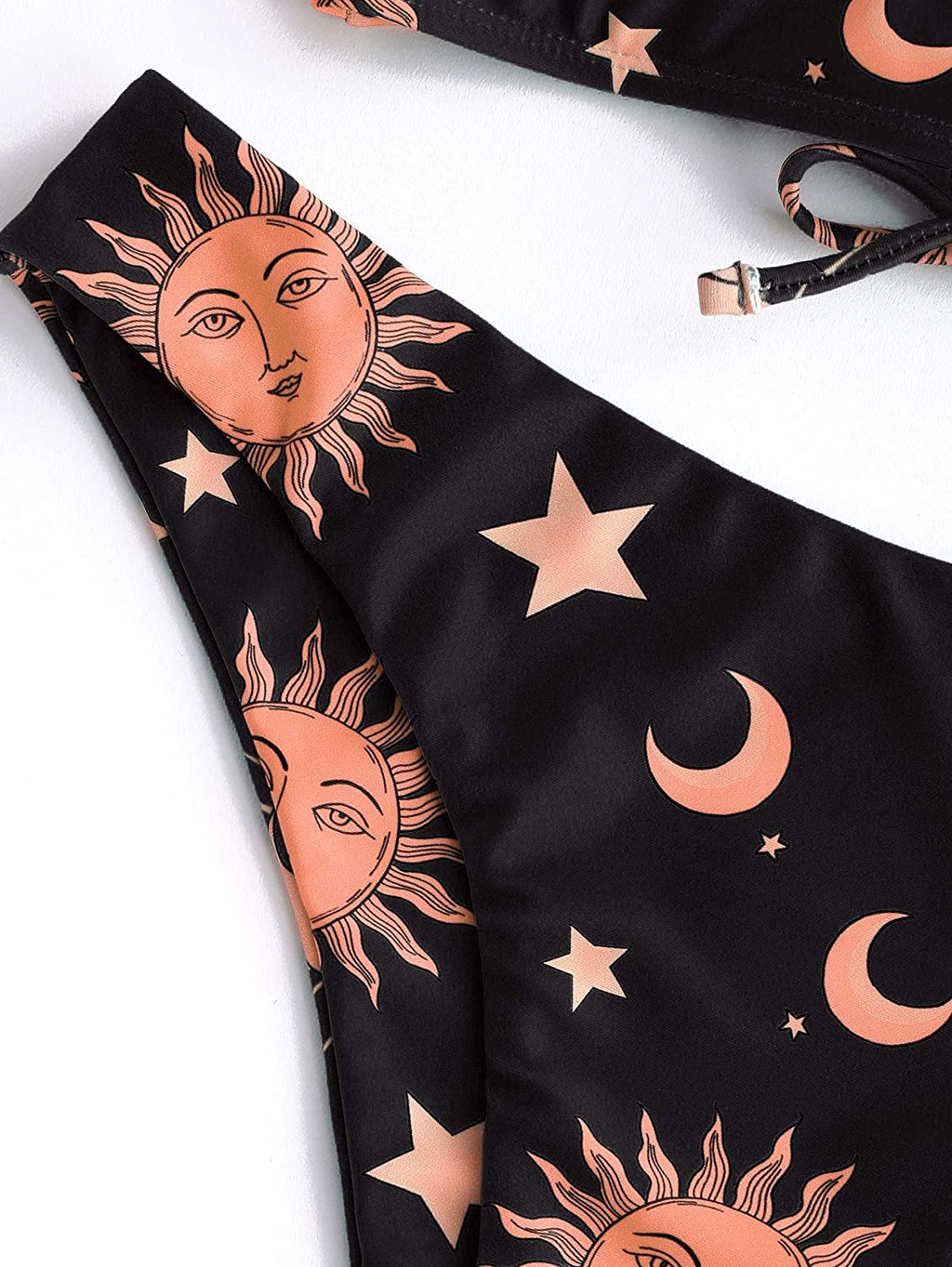 HomeWomenSwimsuits ZAFUL Star Sun Moon Print Bathing Suits for Women Back Criss Cross Lace-up Triangle Bikini