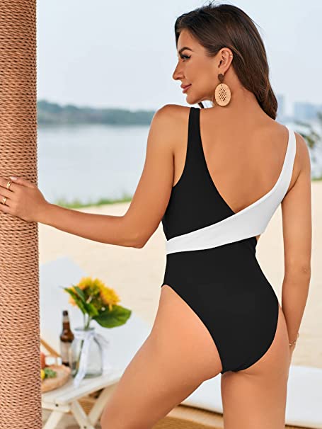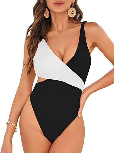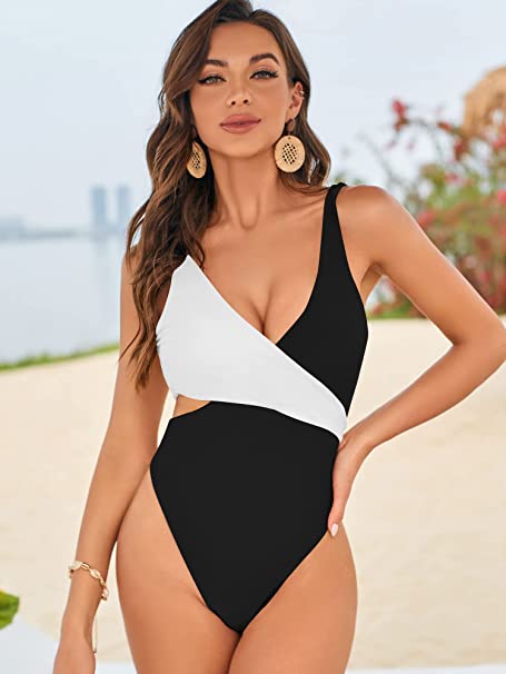ZAFUL Women’s Color Block One Piece Swimsuit Tummy Control Sexy Monokini Cut Out Wrap Bathing Suit